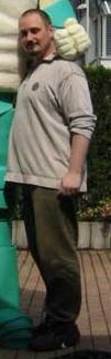 der die Statue von Hagen Stein gebaut hat. Zum Grössenvergleich