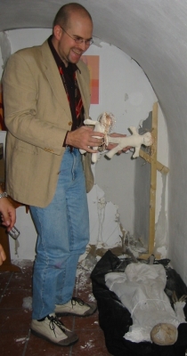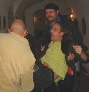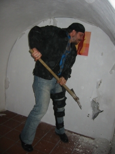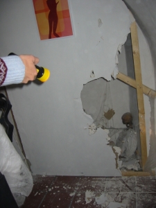Und das obwohl doch gerade ein netter Kollege, der Biologierleherer, alle Anschuldigungen in dem Dopingskandal von vor 10 Jahren auf sich nahm. Was auf dem Film war? Schwer zu beschreiben. Leider haben wir kein Foto als nach dem Film 40 erwachsene Menschen vor Angst unter den Tischen sind und gestandene Mannsbilder weibisch kreischen. Aufgrund des Filmes greift Hammi zur Hacke und zertrümmert die Wand. Genau die die auch seit laaanger Zeit nicht mehr gestrichen wurde. Als der Staub sich setzt findet sich ungeheuerliches.