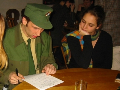 von Kleist einen Krug. Barvo! Das Bier war trotzdem lecker und nur Ute (rechts) wundert sich wo Bolle belibt.
