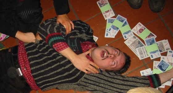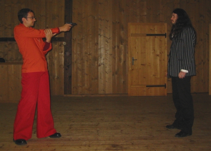 ist nicht mit scharfer Munition geladen. Der angesetzte Schuss Verwundet ihn trotzdem schwer. Wiederbelebungsmassnahmen sind erfolgreich. Andere nutzen das Tohuwabohu aus.