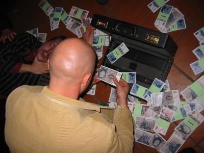 Auf der Flucht mit dem Koffer ereilt ihn der Fluch. Und all seine Scheine (über eine Million Mark) konnte