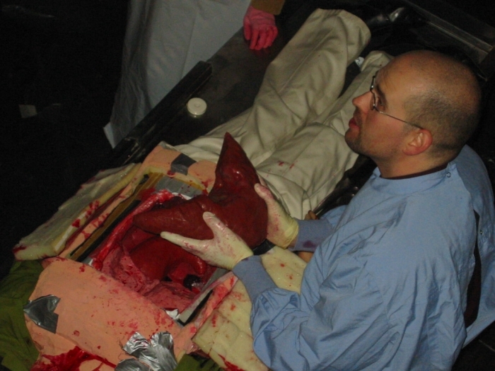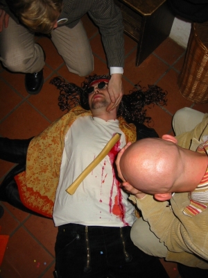 Brr. Grausig. Auch wenns nur Plastik ist. Doch zurück zum Spiel. Auf obigen Bild erkennt man deutlich daß bei der Leber ein Stück fehlt. Übrigens genau das Stück daß als Klattskin-Tumor in einem Einmachglas bei einer Arztkolegin schwimmt. Und als grösster seiner Art in Bälde presentiert werden soll. Was nur die Frage aufwirft wie kommt die Leiche hierher? Wer Schnitt ihr den Kopf ab? Und wozu das alles? Ist etwa der Anwalt garnicht tot?