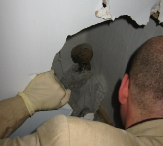 Hinter der Wand befindet sich der Mumifizierte Körper eines kleinen Mädchens. Spuren deuten darauf hin daß sie zum Zeitpunkt der Errichtung der Mauer noch gelebt hat.